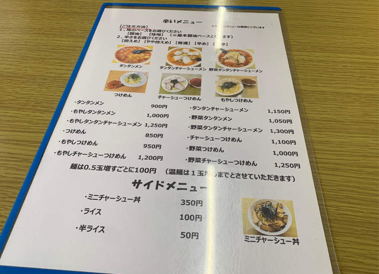 “辛いメニュー” と “辛くないメニュー” とで分かれており、勝浦タンタンメンの辛さが苦手な方でも大丈夫な構成となっております!