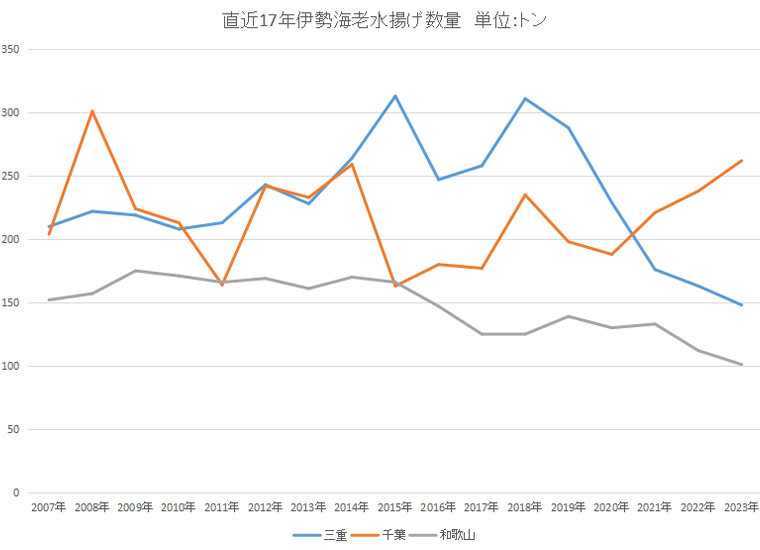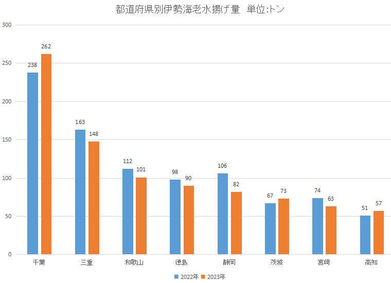 まあ今のところチャンピオンの座は三重県に譲っておきますが、2021年・2022年は多分千葉県が1位に輝いていることでしょう♪(グラフを見る限りかなり険しい道のり) 今後も三重県さんとは伊勢海老を愛する者どおし、いいライバル関係を続けていければと思います♪